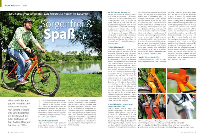Fazit: Das „Idworx All Rohler“ ist ein Traum von Reiserad und kaum zu überbieten. Um das berühmte Haar in der Suppe zu finden, muss man dann schon zum Friseur. Aber halt! Unser Tester Werner wäre nicht Werner, wenn er nicht doch etwas finden würde: „Da eine Klingel im Ausstattungsumfang vorhanden ist, musste wohl der Flaschenhalter herhalten, denn der fehlt.“