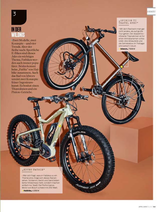 Mit dem Rad kann man gar nicht anders, als auf große Tour gehen. Der doppelt konifizierte Titanrahmen ist für einen Antriebsriemen vorbereitet. Alle Anbauteile und die Getriebebox im Tretlager sind extrem robust.